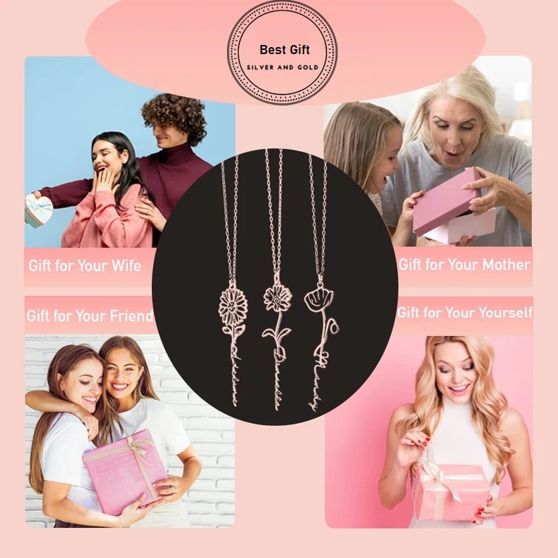 Personalized Name Necklace Birth Flower Custom Family Jewelry Mom's Gift