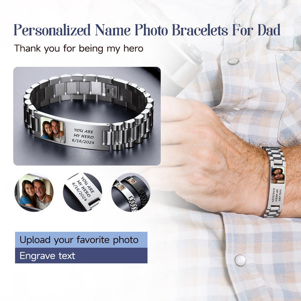 Personalized men's bracelets with customizable pictures and text